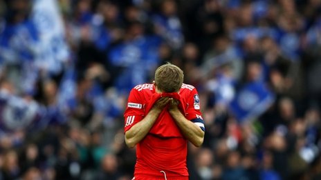 Allt til leiksloka sótti Liverpool en það dugði ekki til. Í blálokin komst John Terry fyrir skot Andy á síðustu stundu og hinu megin björguðu varnarmenn Liverpool eftir að Jose missti af boltanum. Allt kom fyrir ekki og Chelsea vann F.A. bikarinn. Leikmenn og stuðnigsmenn Liverpool voru niðurbrotnir í leikslok.